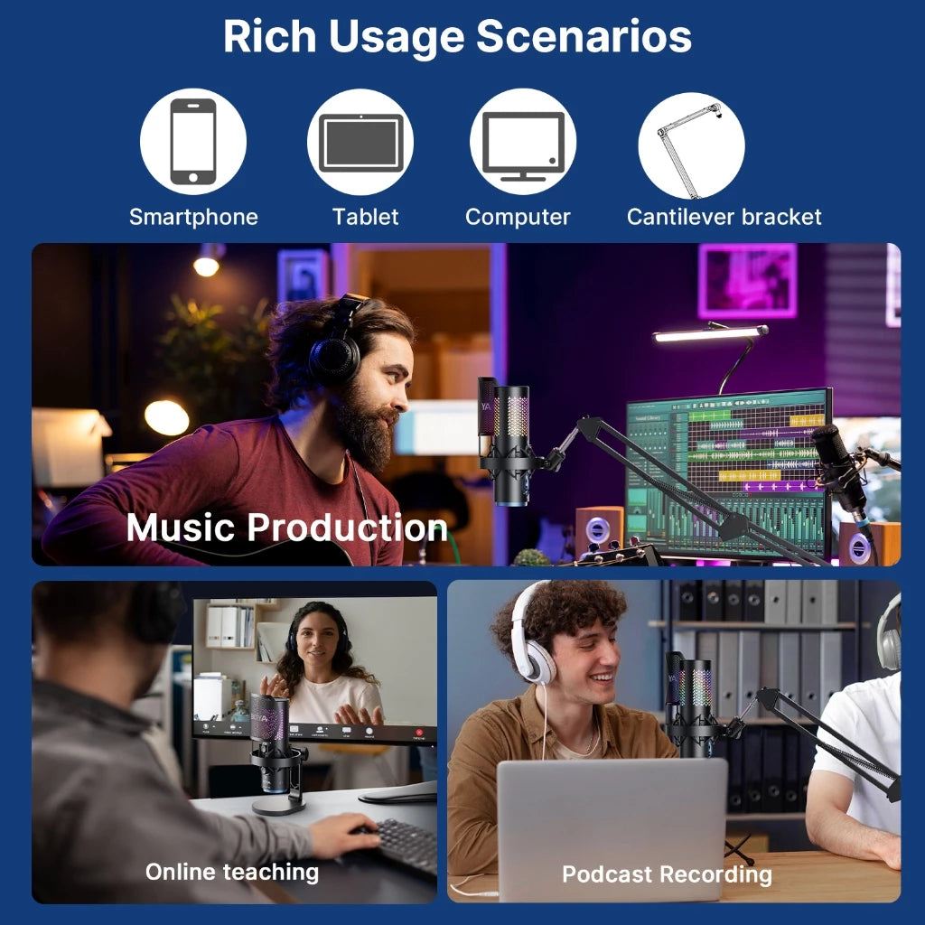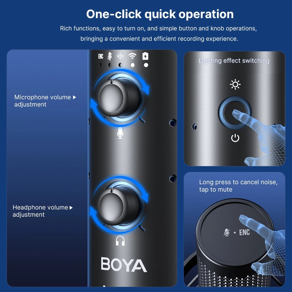 Touch Mute Function – Instantly mute your mic with a single tap, ensuring clean and interruption-free streaming or recording.